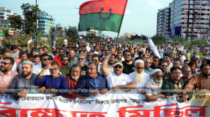 তারেক রহমানকে নিয়ে ‘ষড়যন্ত্র ও অপপ্রচারের’ প্রতিবাদে সিদ্ধিরগঞ্জ-ফতুল্লায় বিএনপির বিক্ষোভ